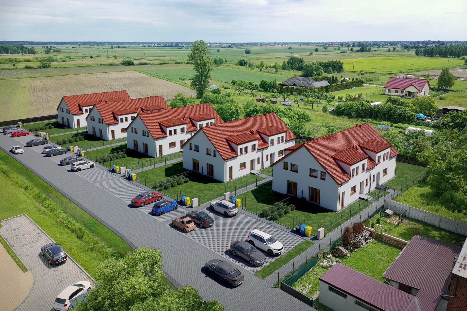 Kameralne mini osiedle. Docelowo będzie 20 lokali mieszkalnych. Dojazd prywatną, nieprzelotową drogą utwardzoną kostką betonową. W okolicy jest dużo przestrzeni do spacerów, wycieczek rowerowych itp. Obok jest plac zabaw dla najmłodszych, świetlica wiejska i małe boisko piłkarskie.