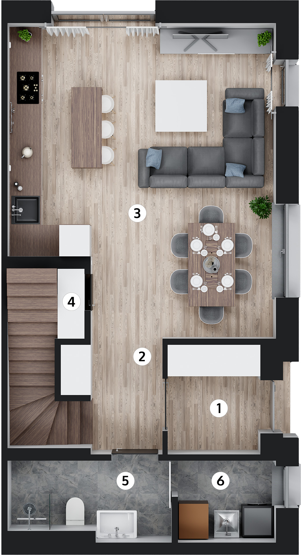 | 3 | Salon z aneksem kuchennym | deska podłogowa | 26,37 |