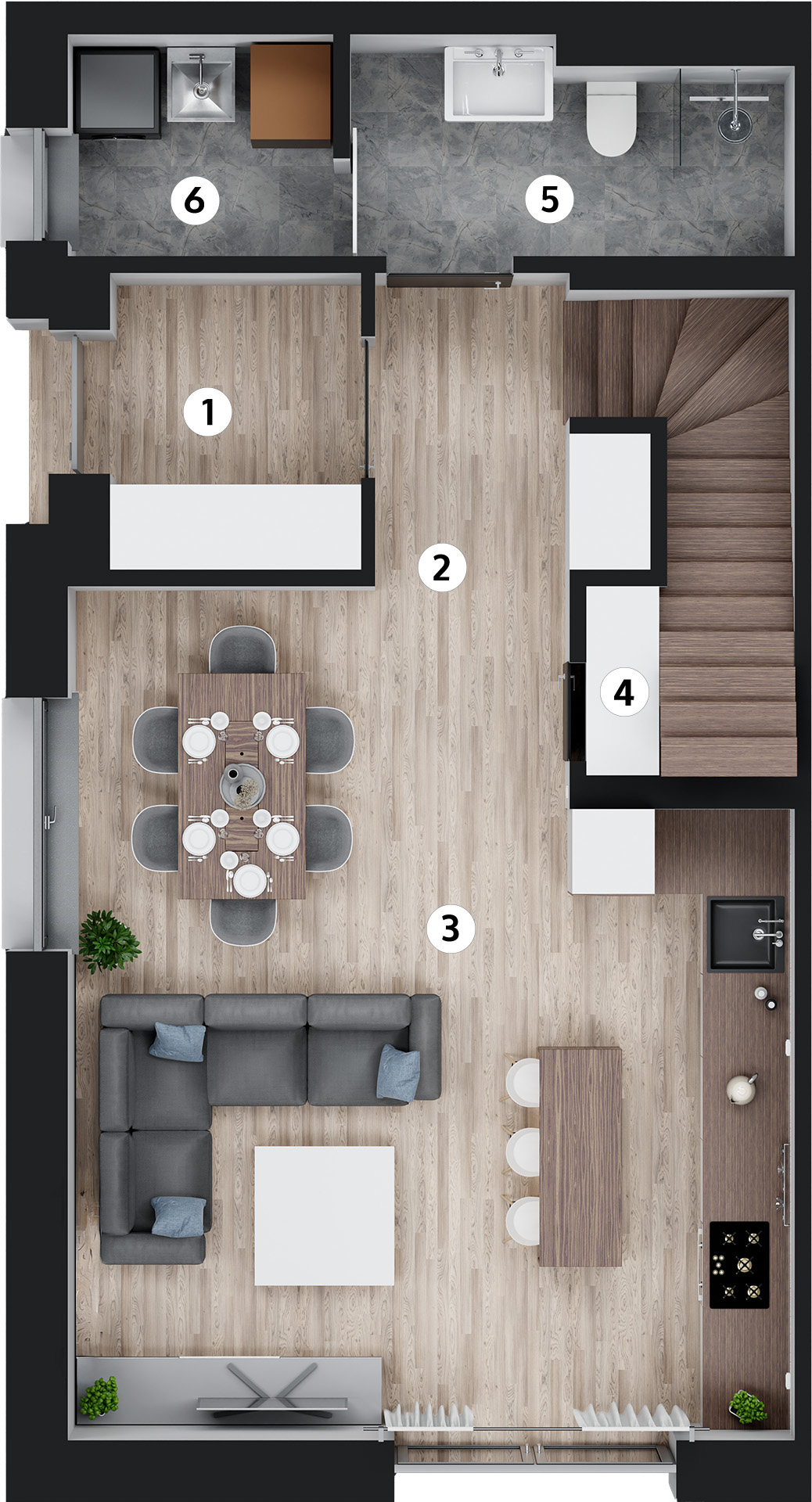 | 3 | Salon z aneksem kuchennym | deska podłogowa | 26,37 |